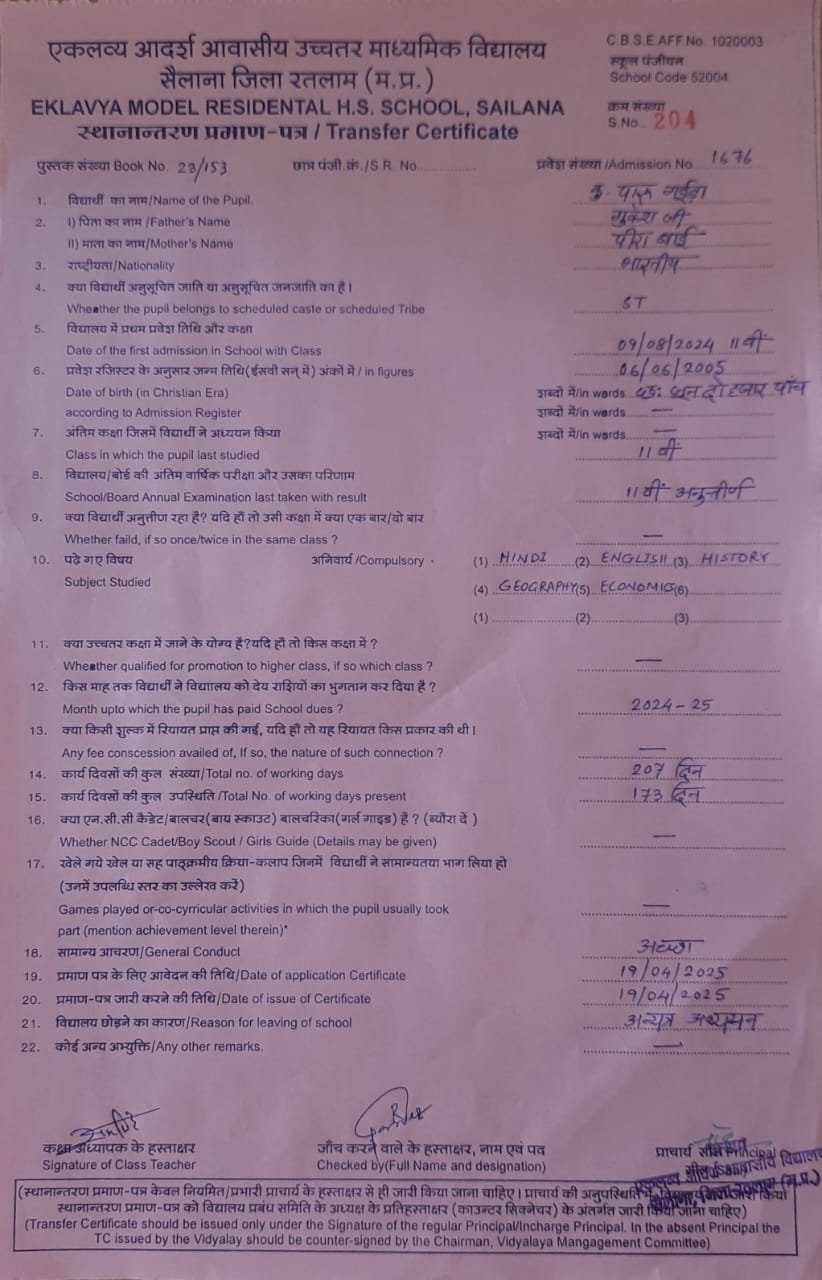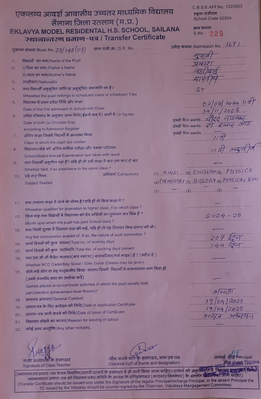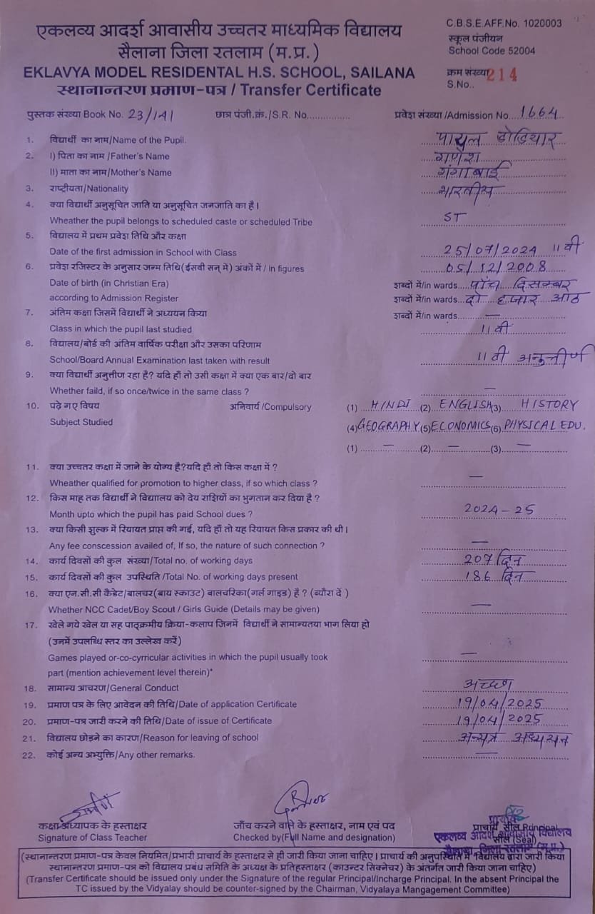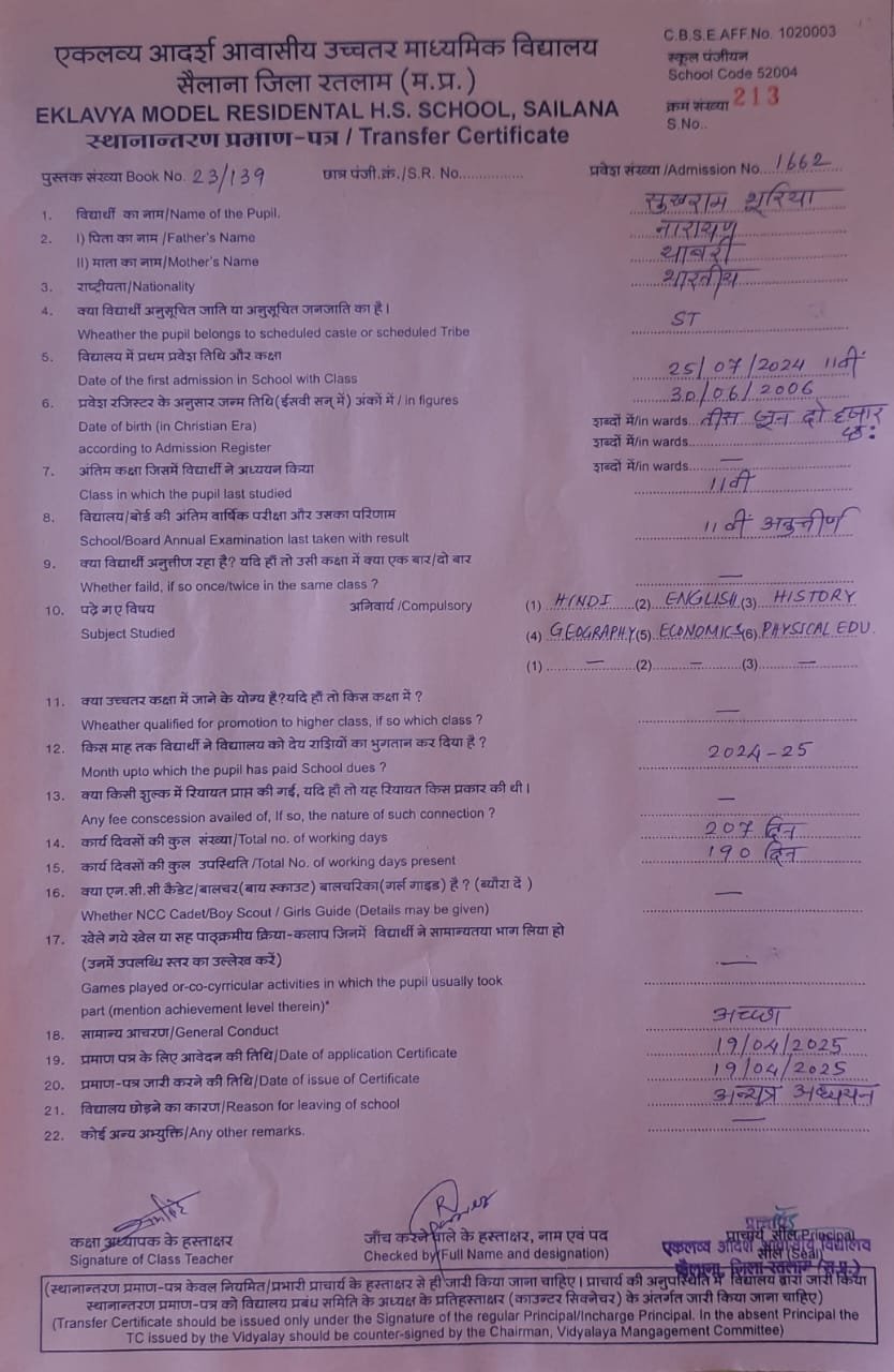| 1662 | Sukhram Bhuriya | 19/04/2025 | 213 | 11th fail |  | | | | | | | | | | | | | | | | | | | |