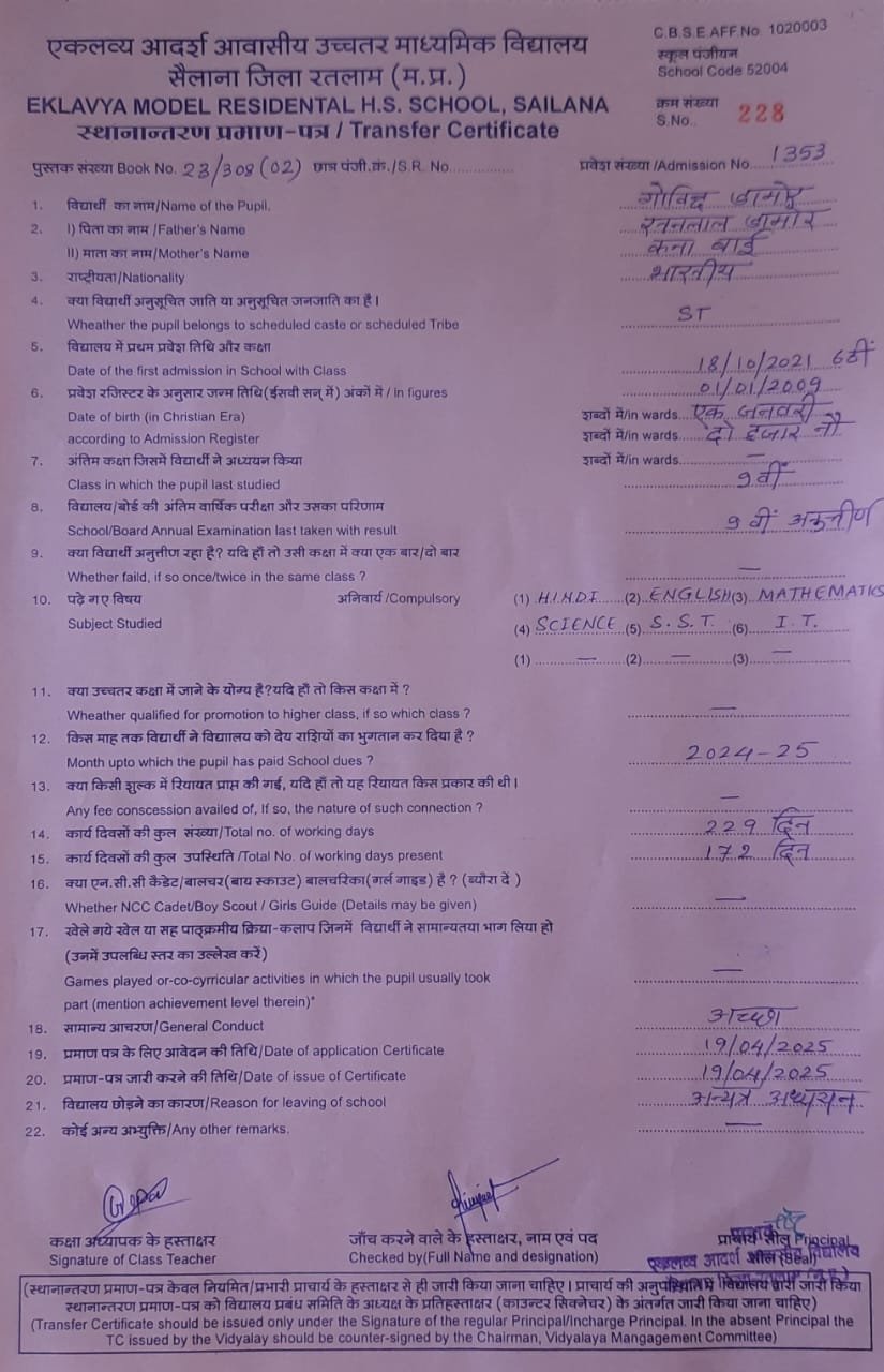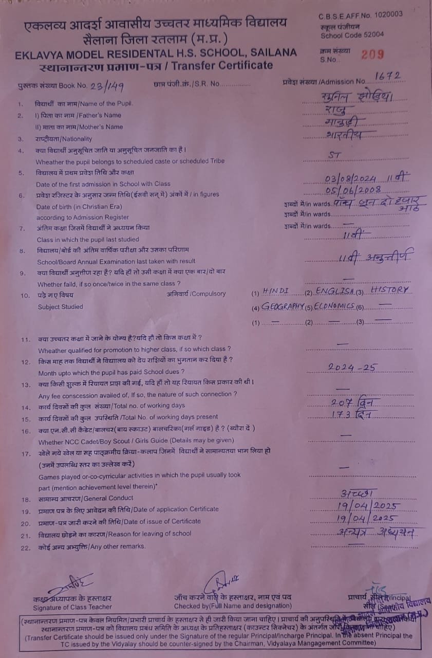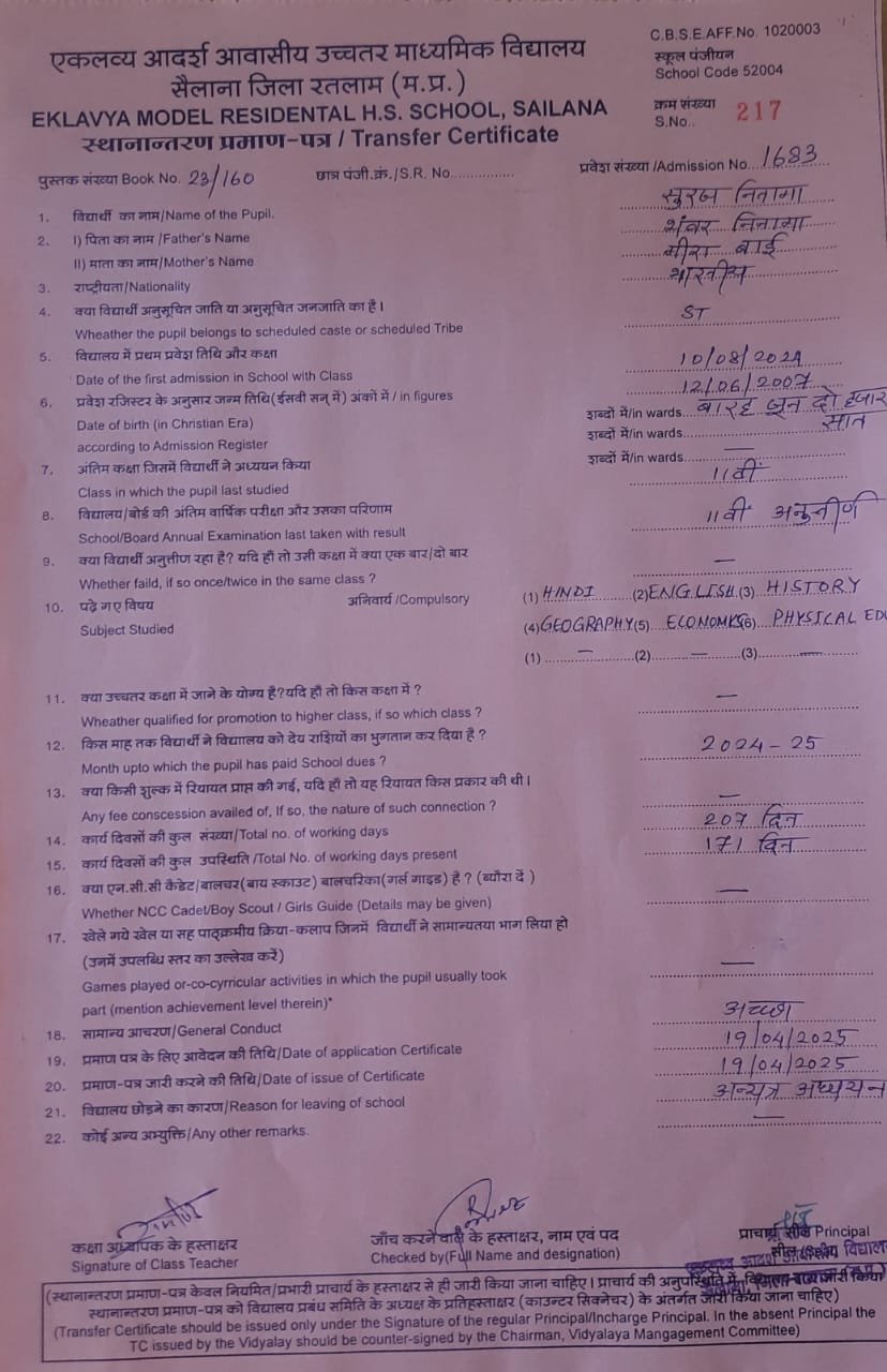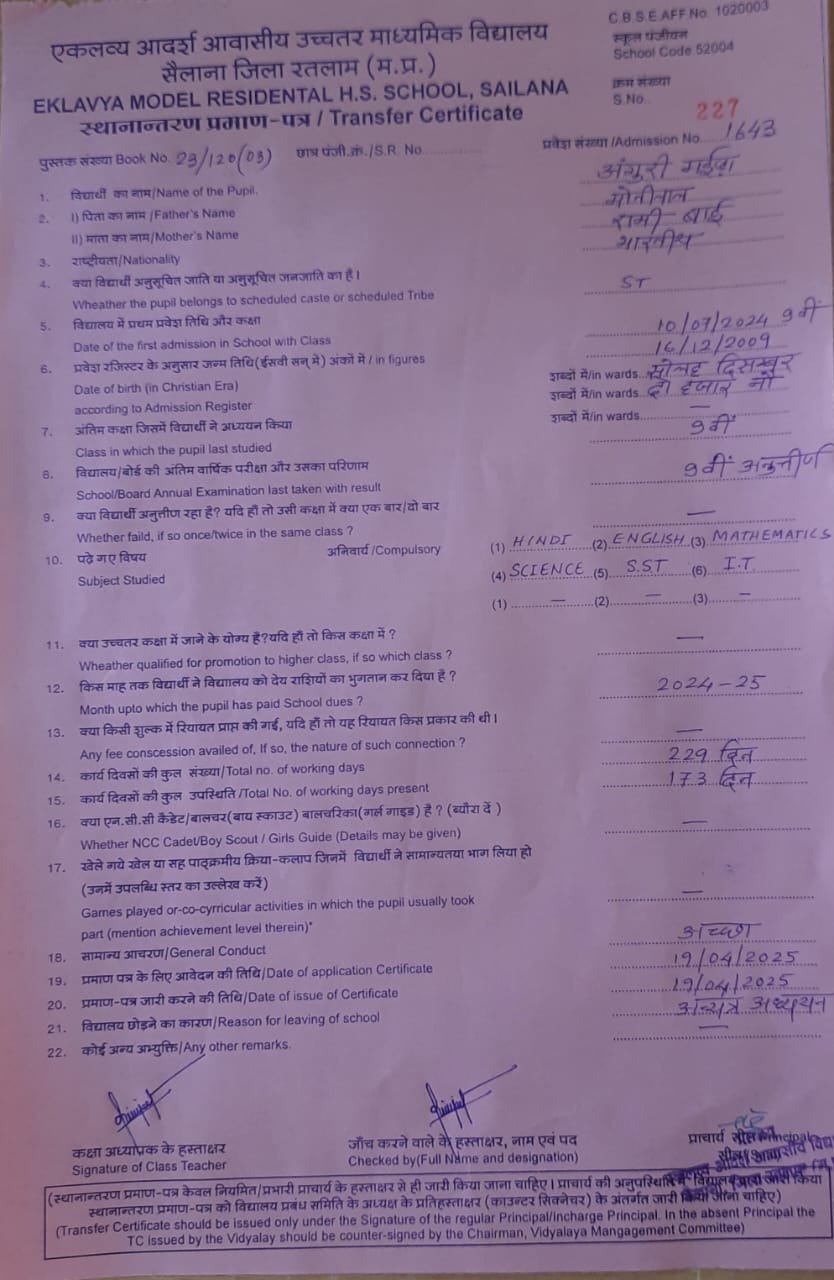 | 1662 | Sukhram Bhuriya | 19/04/2025 | 213 | 11th fail |  | | | | | | | | | | | | | | | | | | | |