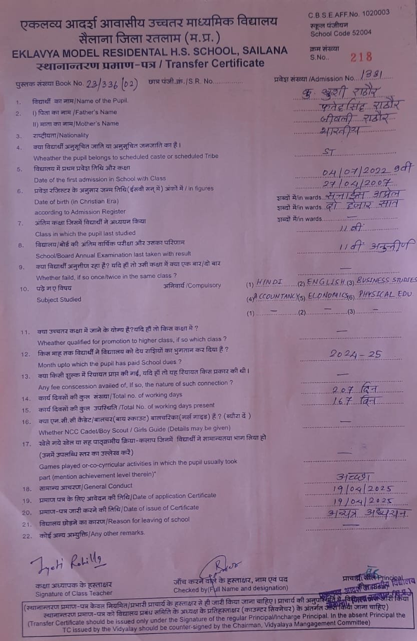 | 1381 | Khushi Rathore | 19/04/2025 | 218 | 11th fail |  | | | | | | | | | | | | | | | | | | | |