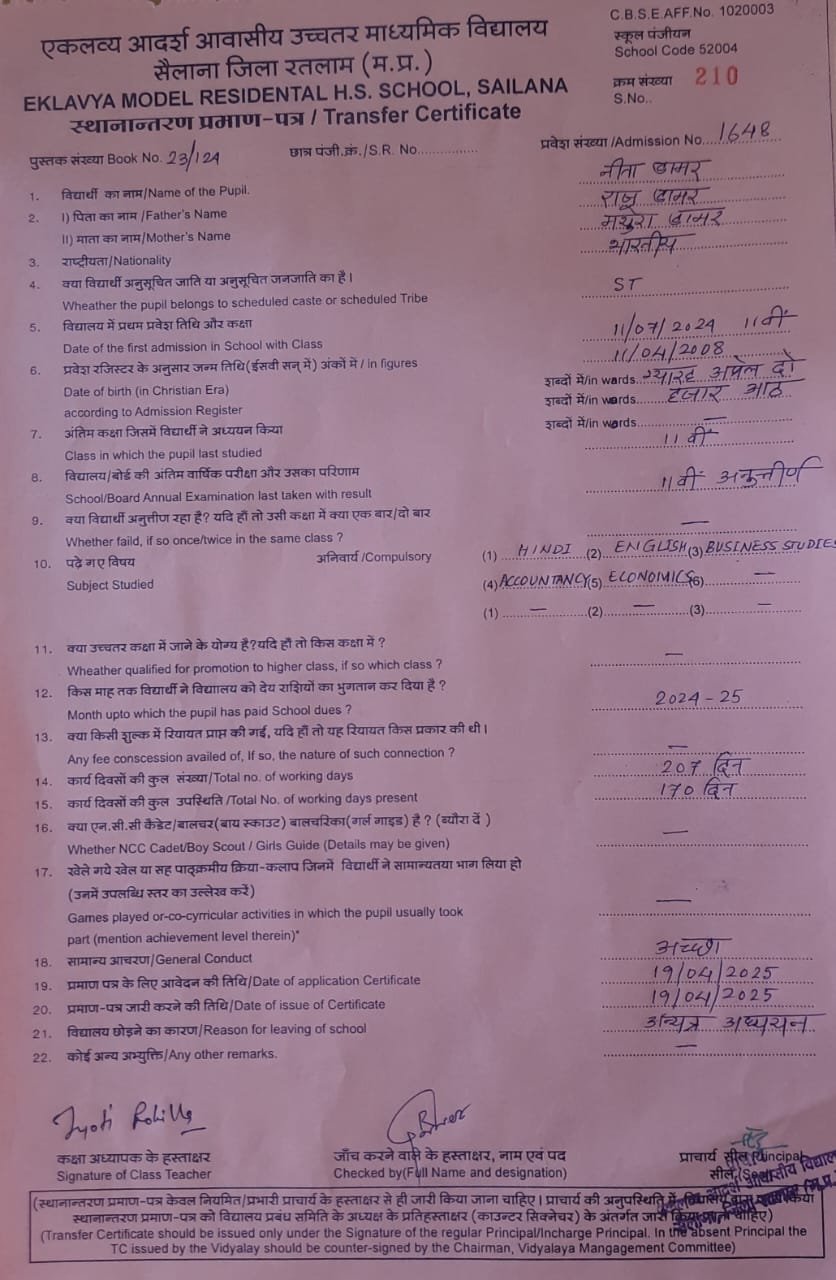 | 1648 | Neeta Damor | 19/04/2025 | 210 | 11th fail |  | | | | | | | | | | | | | | | | | | | |