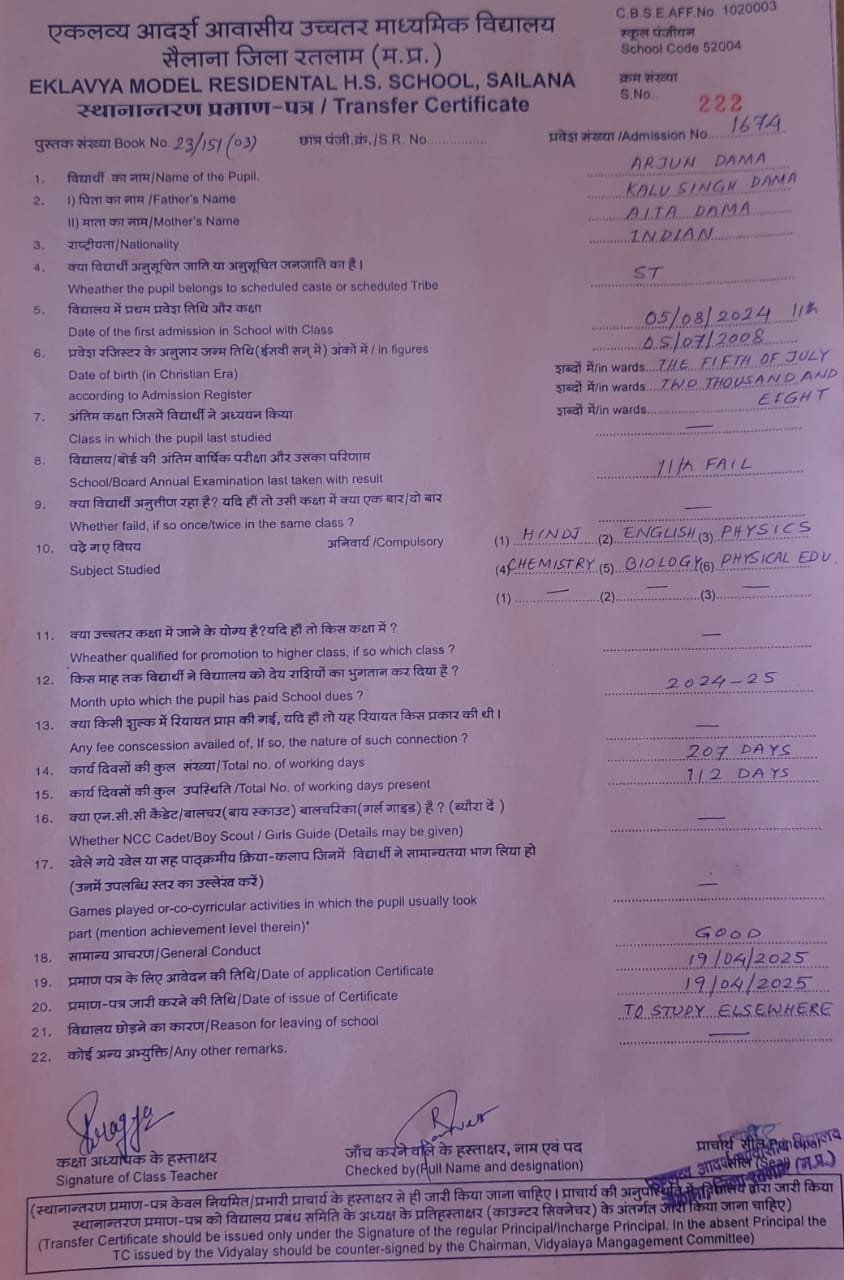 | 1674 | Arjun Dama | 19/04/2025 | 222 | 11th fail |  | | | | | | | | | | | | | | | | | | | |