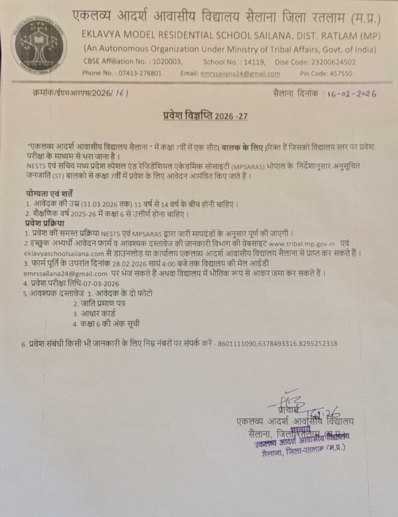 EMRS started in the year 1997-98 to impart quality education to ST children in remote areas in order to enable them to avail of opportunities in high and professional educational courses and get employment in various sectors. The schools focus not only on academic education but on the all-round development of the students. Each school has a capacity of 480 students, catering to students from Class VI to XII. Hitherto, grants were given for construction of schools and recurring expenses to the State Governments under Grants under Article 275 (1) of the Constitution.